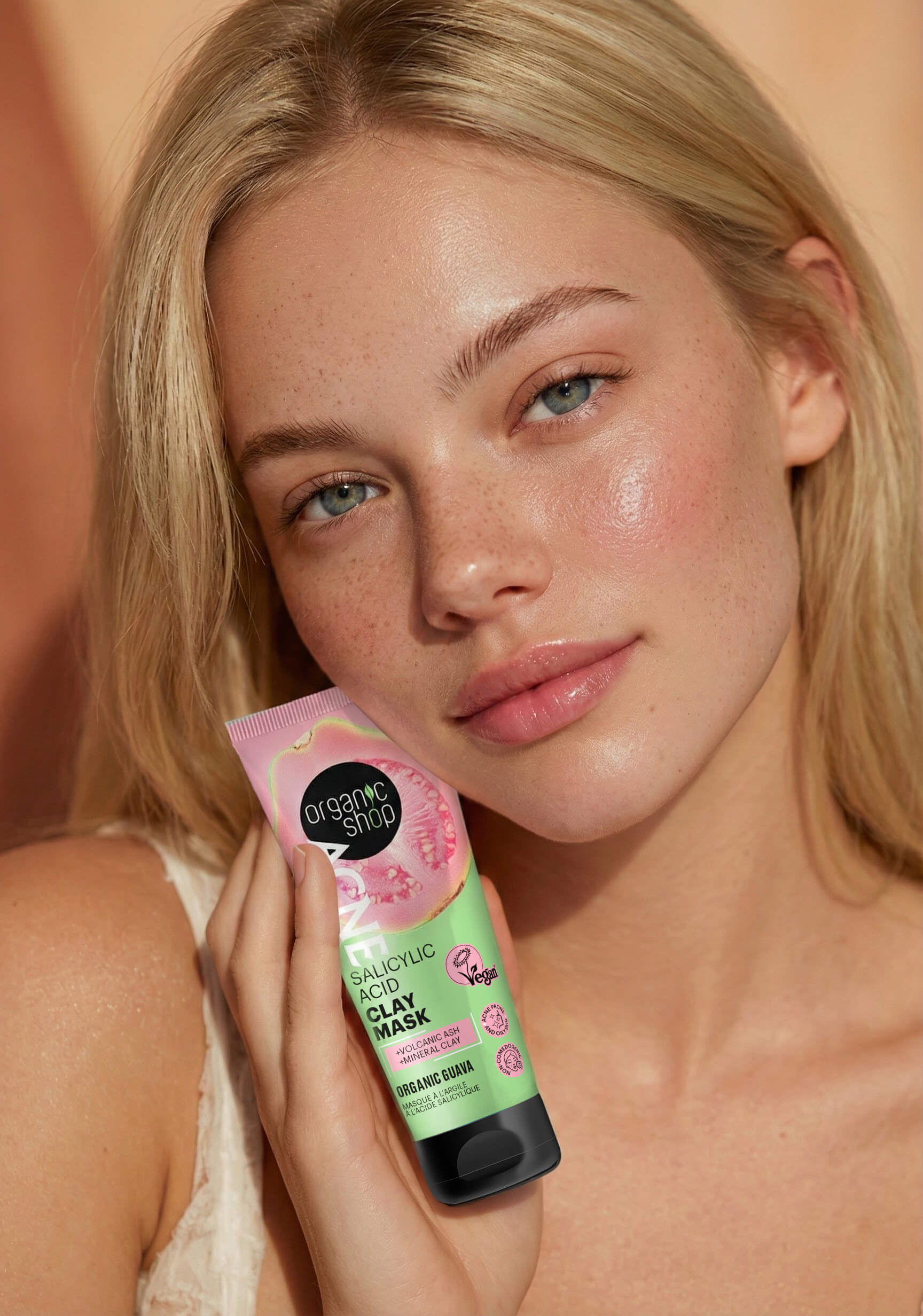 Antioxidant-rich Organic Guava, combined with volcanic ash clay and mineral clay helps detoxify the skin and reduces post-acne marks for a clearer complexion.