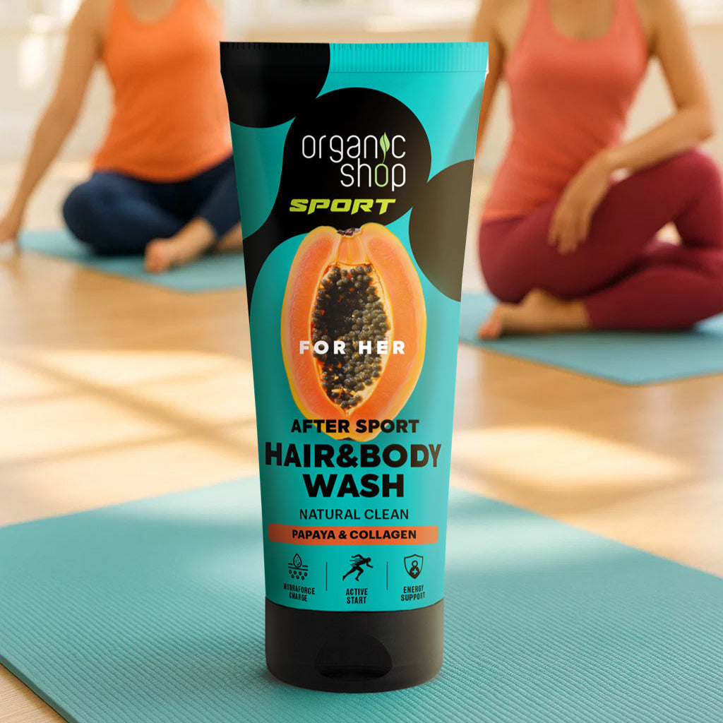 A post-workout routine, specially designed for her, cleanses away sweat and dirt in one step while nourishing the skin and hair. Organic Papaya - brightens skin after workouts Panthenol - soothes skin after sweat Vegetable Collagen - increases hydration for dry skin.