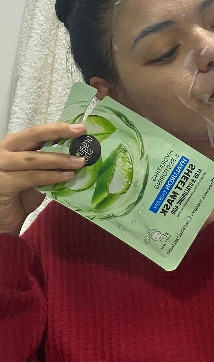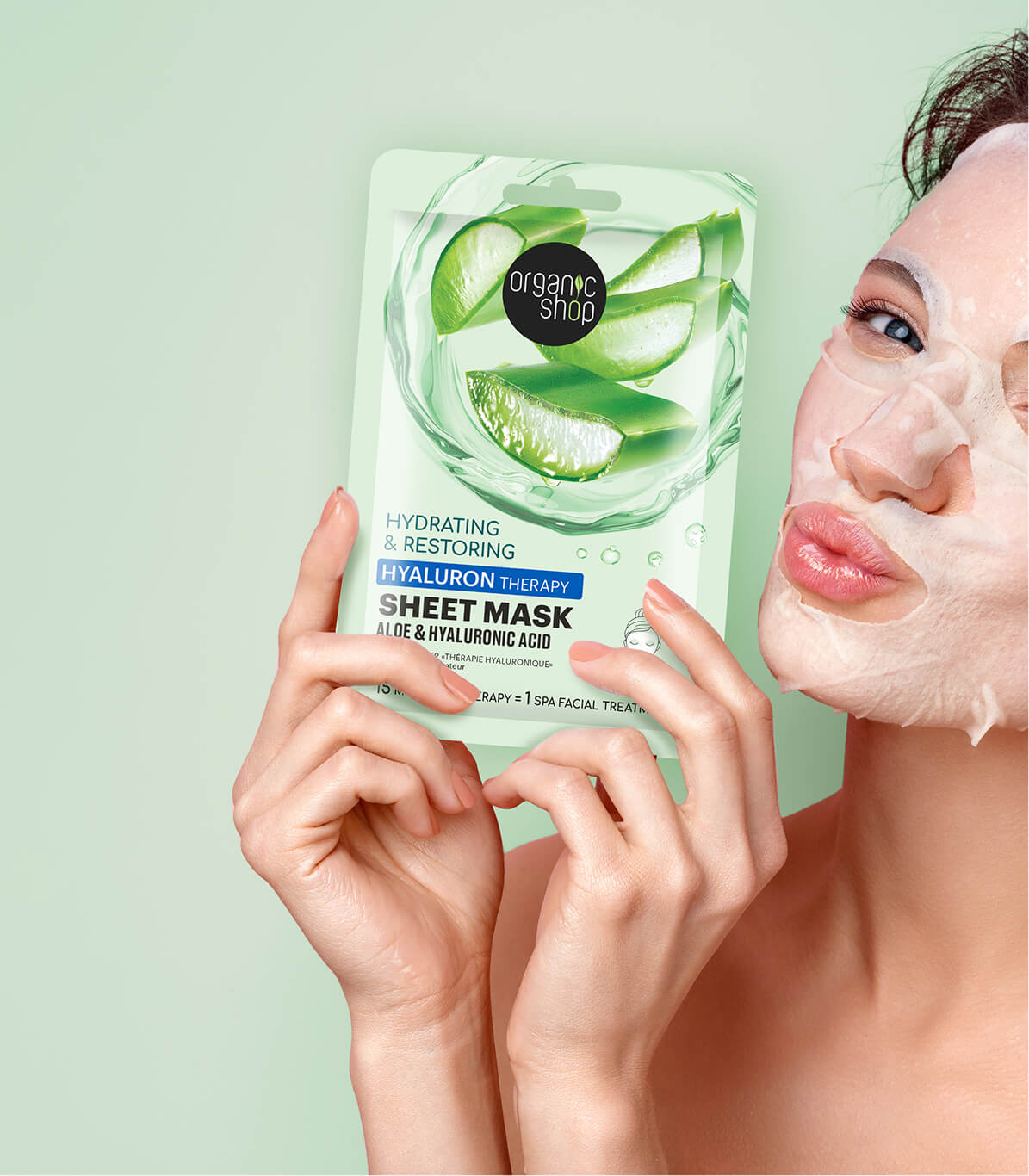 This mask helps to reveal you fresh, perfectly hydrated baby-smooth skin. It is formulated with Hyaluronic Acid and Organic Aloe that effectively replenish the loss of skin moisture and improve its texture, making it velvety and pleasant to the touch.